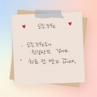 칭찬합니다 칭찬합니다 모든부서 모든분들을 칭찬합니다 항상 친절히 대해 주시고 조금이라도 불편한 점이 있거나, 아프다고 ..