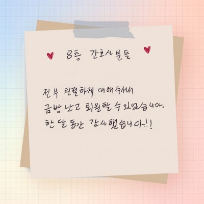 칭찬합니다 칭찬합니다 8병동 모두를 칭찬합니다 모두 친절하시고 보호자가 없는 상황에서 도움을 많이 받았습니다. 감사합니..
