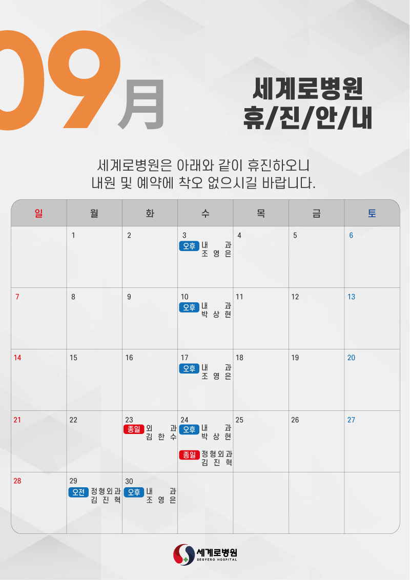 - 이전글★ 9월 관절·척추센터 토요일 진료 의료진 안내 25.08.26
