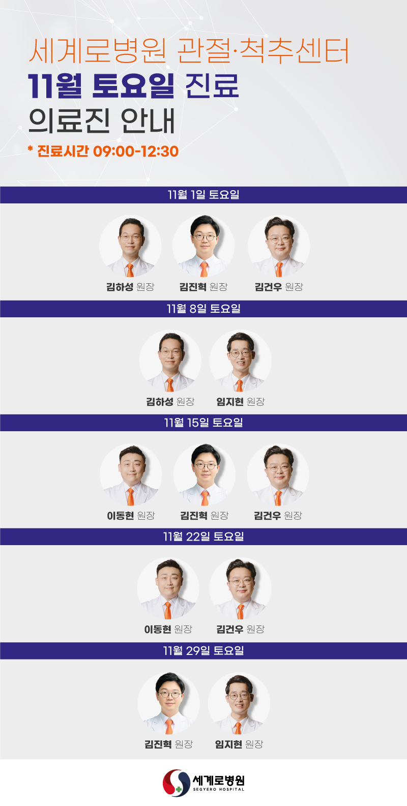 ★ 11월 관절·척추센터 토요일 진료 의료진 안내