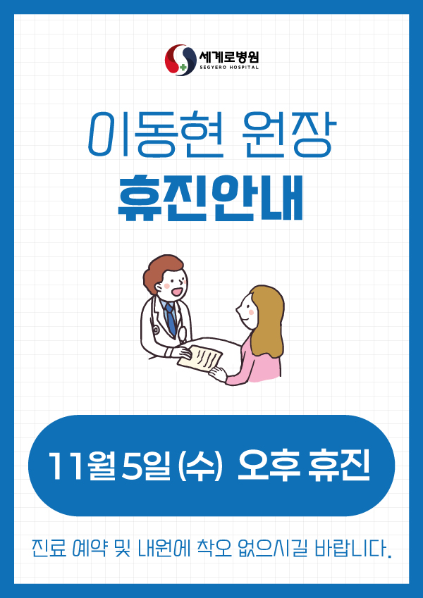 정형외과 이동현 원장 11월 5일 (수) 오후 휴진 안내
