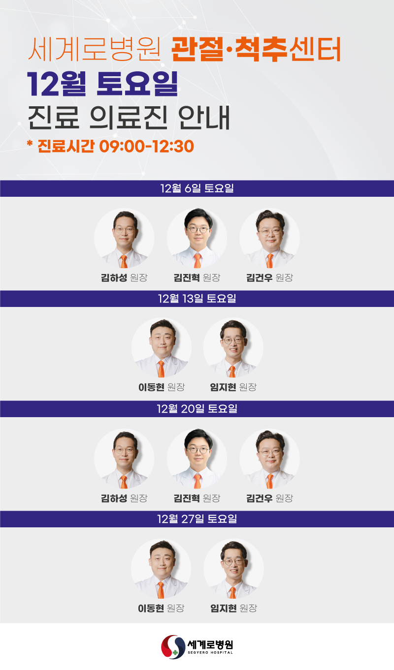 ★ 12월 관절·척추센터 토요일 진료 의료진 안내