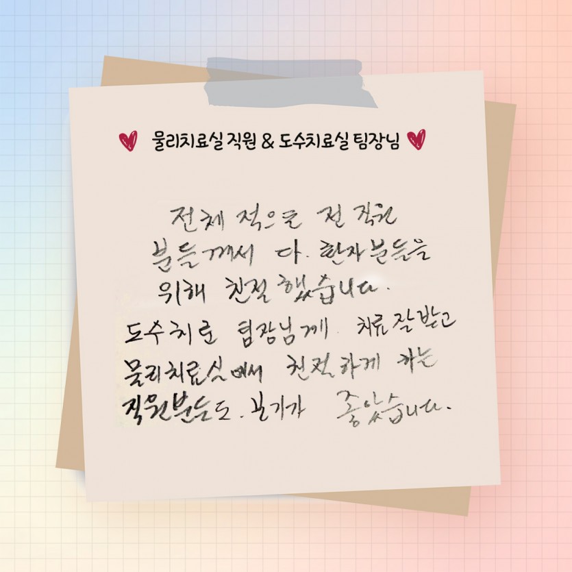 물리치료실 직원 & 도수치료실 팀장님을 칭찬합니다