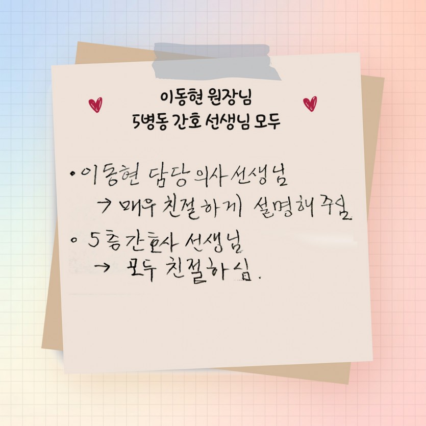 이동현 원장님, 5병동 간호선생님 모두를 칭찬합니다