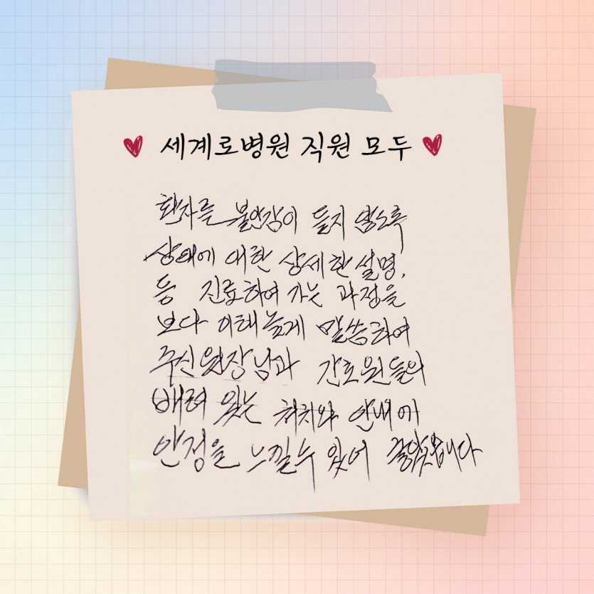 세계로병원 직원 모두를 칭찬합니다