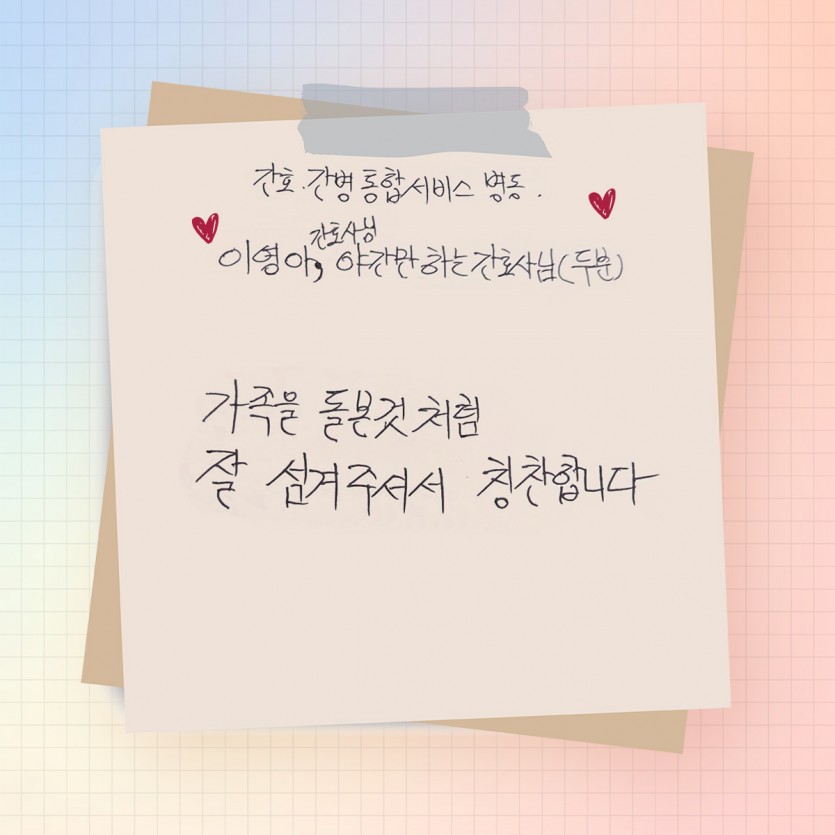 가족을 돌본 것처럼 잘 섬겨주셔서 칭찬합니다.