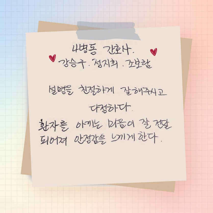 4병동 강승구, 정지희, 조보람 간호사를 칭찬합니다